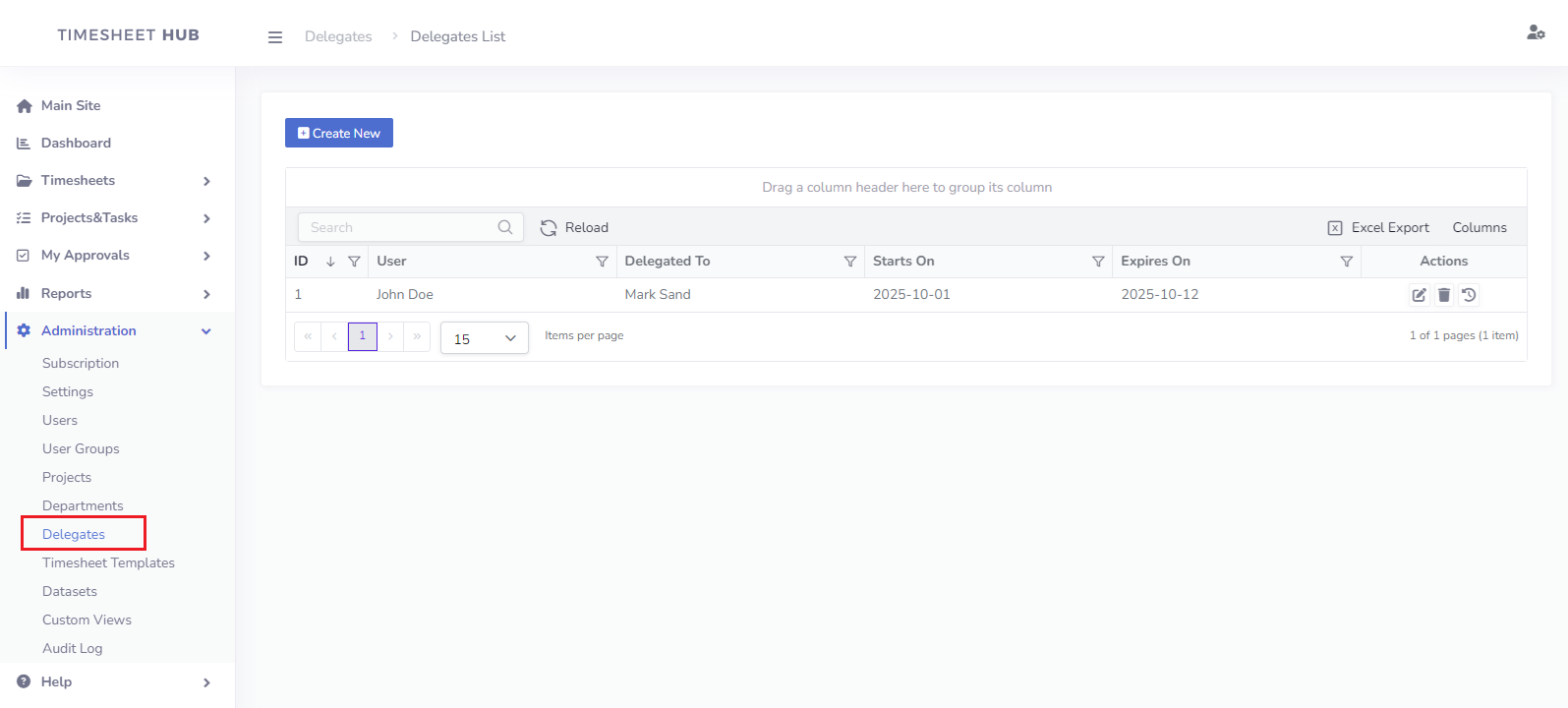 App administrators have the authority to oversee and manage delegates for all users in the system. This can be done under the Administration -> Delegates section,