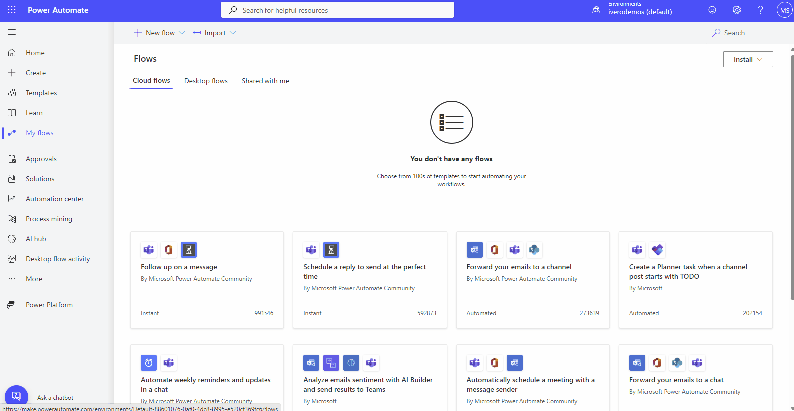 - Open Power Automate service, for example by using this link