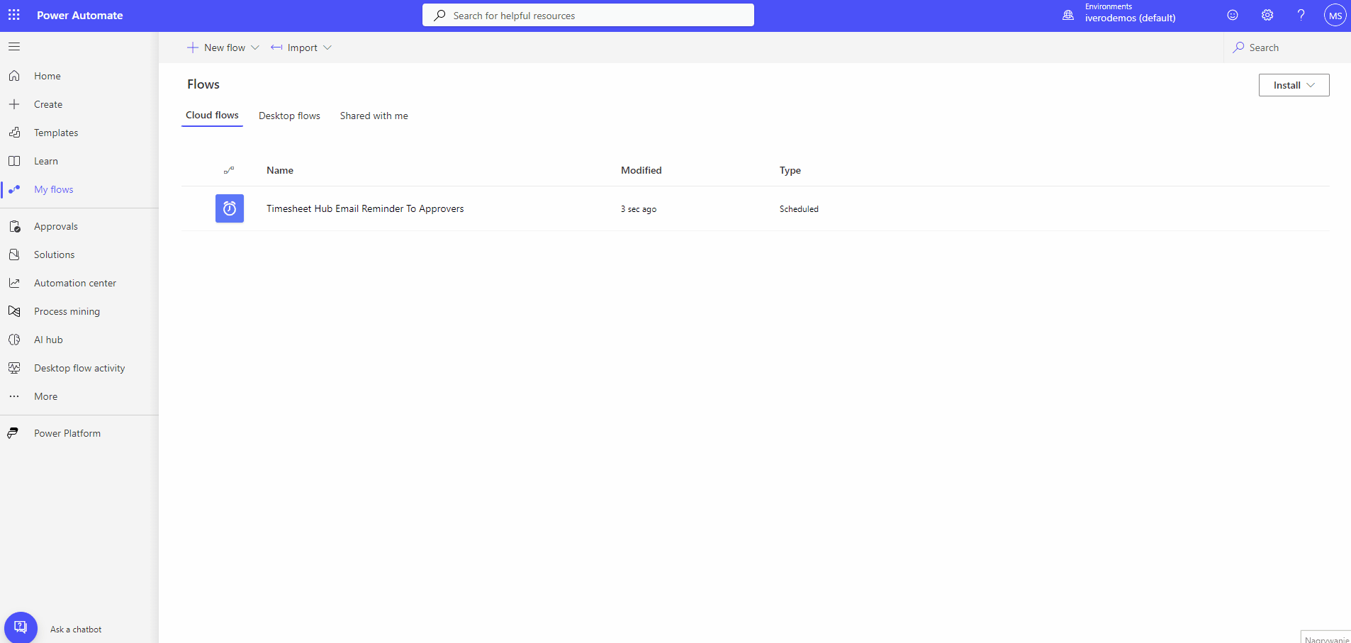 - Create new flow and select "Scheduled cloud flow" as flow type