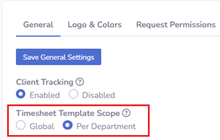 - Find Timesheet Template Scope and select Per Department.
