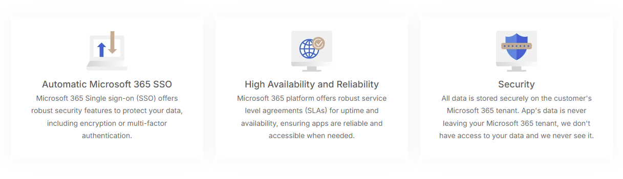 Timesheet Hub is built to seamlessly integrate with your Microsoft 365 environment, ensuring security, reliability, and ease of use. With automatic Single Sign-On (SSO), robust uptime guarantees, and data stored securely within your Microsoft 365 tenant, your organization retains full control over its information while enjoying the convenience of a highly available and secure platform.